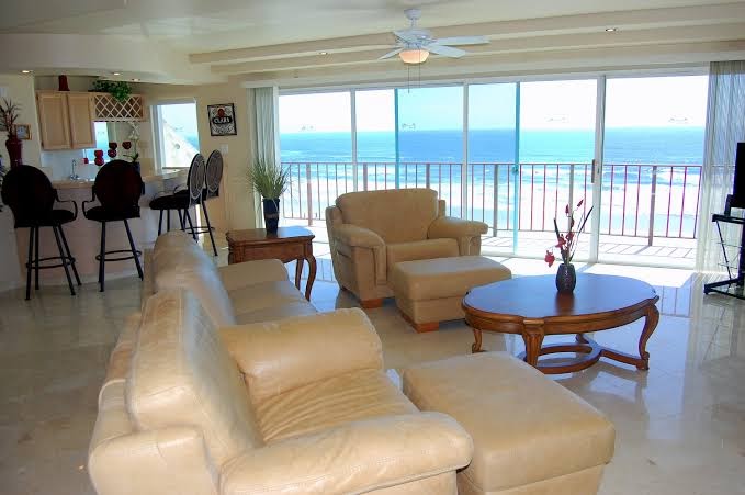 This was a nice condo right on the beach. All rooms have an ocean view, some better than others. My only complaint is it is situated right next to two large outdoor bars that play LOUD music on weekends and pop firecrackers on the beach. If you want a good party spot during "the season" this would be it. Lots of places to eat nearby. Appeared safe. Beach was clean.